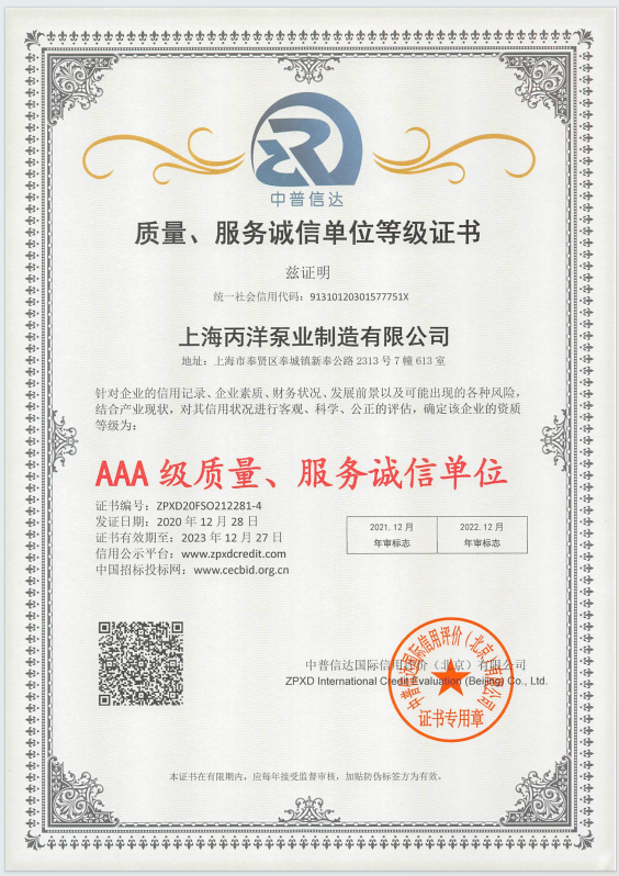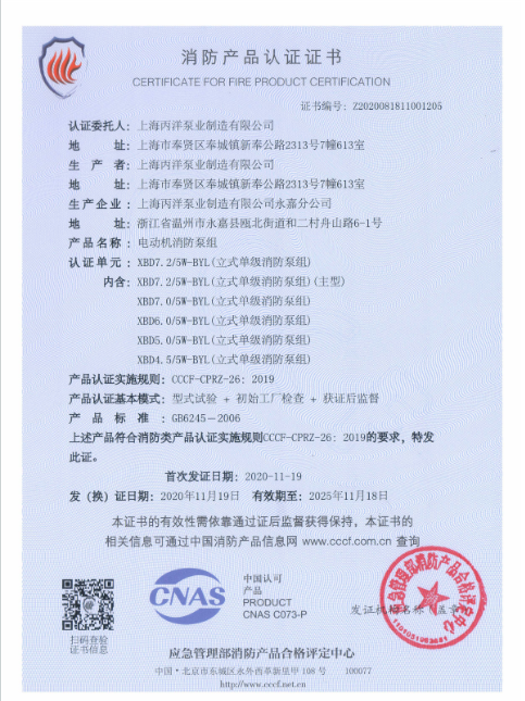 上海丙洋泵業(yè)集團(tuán)有限公司是專業(yè)從事水泵、生活消防自動給水設(shè)備及水泵智能控制的開發(fā)、生產(chǎn)、銷售為一體的生產(chǎn)型現(xiàn)代化民營企業(yè)。公司生產(chǎn)車間1.3萬平方、主要產(chǎn)品擁有立式單級消防泵、立式多級消防泵、消火栓泵、噴淋泵、排污泵、變頻成套供水設(shè)備、消防增壓穩(wěn)壓設(shè)備、污水提升設(shè)備、管道離心泵、立臥式消防泵、柴油機(jī)消防泵、深井消防泵、化工泵,多級離心泵、不銹鋼多級離心泵、自吸泵、水泵控制柜等系列產(chǎn)品。丙洋泵業(yè)在以質(zhì)量求生存,科技創(chuàng)興;追求卓越,走向未來的方針,不斷開拓進(jìn)取、創(chuàng)新發(fā)展,在長期的實(shí)踐中形成了一套完整的質(zhì)量管理體系,本公司以優(yōu)質(zhì)的管理、優(yōu)質(zhì)的產(chǎn)品、優(yōu)質(zhì)的服務(wù)贏得了國內(nèi)廣大用戶的信賴和好評。